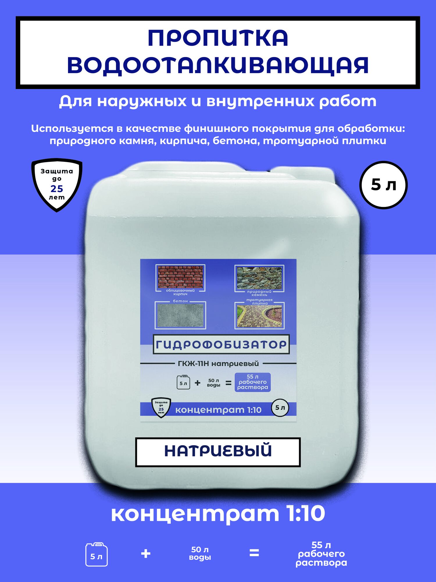 ГКЖ-11Н представляет собой водный раствор метилсиликоната натрия концентрацией 30%, предназначенный для серийного применения. По индивидуальному запросу возможен выпуск модификации с содержанием активного вещества 45% и массовой долей кремния 8–10%.